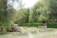 Die etwa 120 Stellplätze sind angenehm groß, von hohen Hecken begrenzt unter Laub- und Nadelbäumen. Die gesamte Anlage ist von vielen schmalen Wegen durchzogen und vermittelt eine Labyrinth artige Ausstrahlung.
