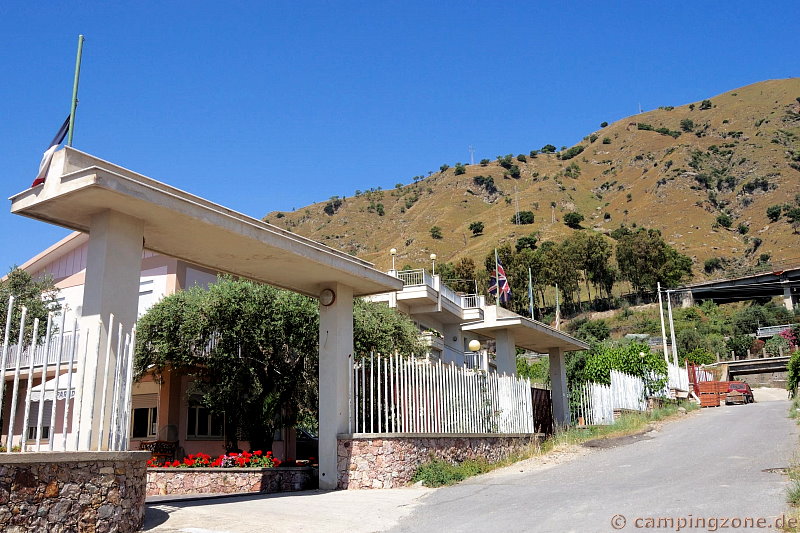 Von der Landstraße aus führt die Einfahrt in den Platz direkt über eine steile Abfahrt hinunter zum Strand. Vermutlich wegen der chaotischen Parkerei der Wochenend-Badegäste entlang der Küste versperrt eine Kamera überwachte Schranke sofort hinter der oberen Einfahrt den unkontrollierten Zugang zum Gelände. Problematisch kann es werden, wenn mehrere anreisende Camper auf der Straße nach der Klingelanmeldung auf Einlass warten müssen. Noch komplizierter wird es, wenn das ausfahrende Gespann vor der Schranke auf der Steigung anhalten und wieder anfahren muss. Dann kann man nur hoffen, dass der Verkehr auf der Landstraße nichts gegen herausspringende Campingfahrzeuge einzuwenden hat.