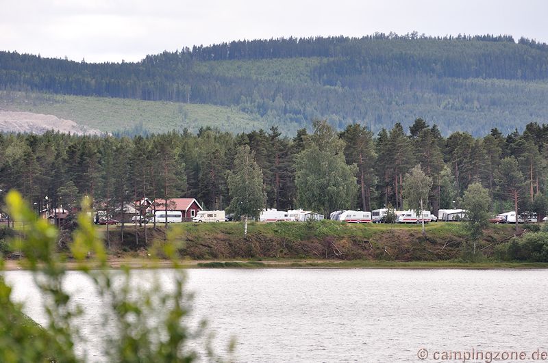 Der Campingplatz liegt längs der Straße 83 zwischen Straße und Växnansee, der hier bei Ljusdal in den Ljusan-Fluss fließt. Die Einfahrt führt zum Rezeptionsgebäude und zu schattenlosen Stellplätzen am Steilufer des Sees. Andere Stellflächen liegen unter Bäumen etwas windgeschützter.